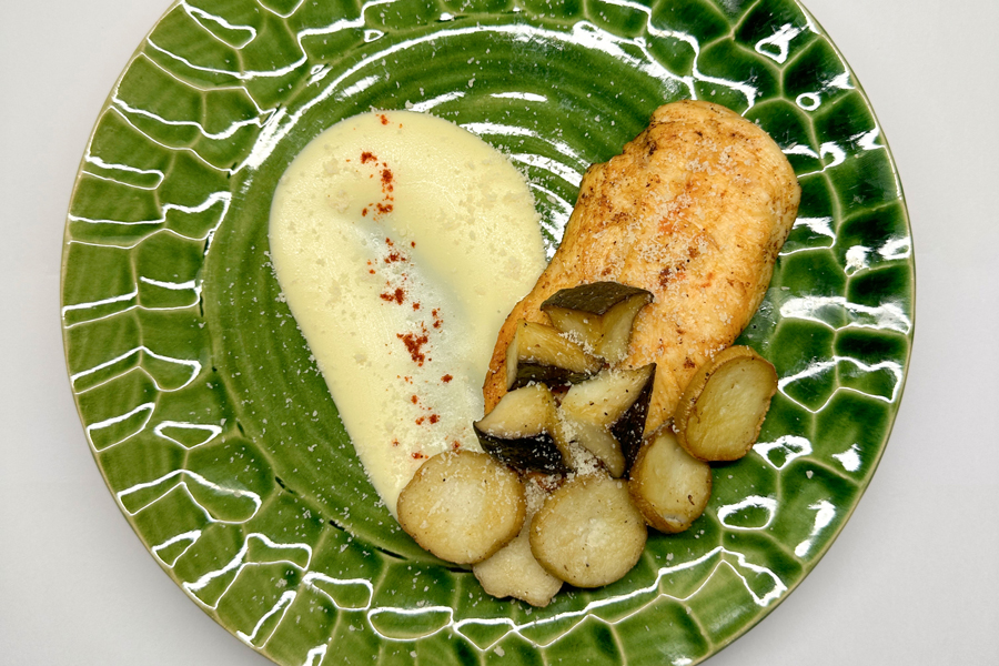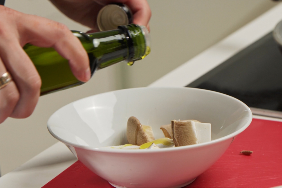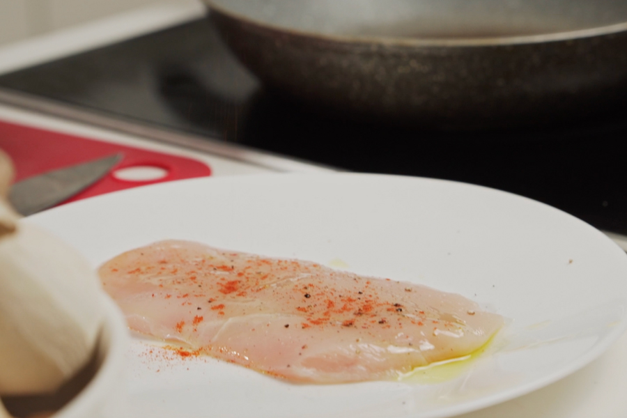 1. Змащуємо курячу грудку оливковою олією, додаємо сіль, перець та паприку.